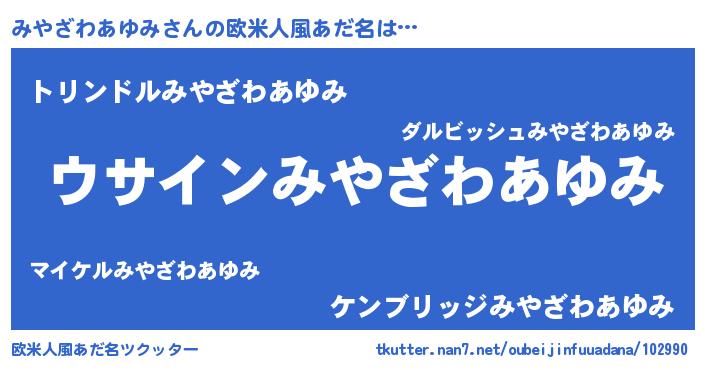 | ヘコむあだ名 | 『みやを』『みやざわあゆみ(爆)』 |