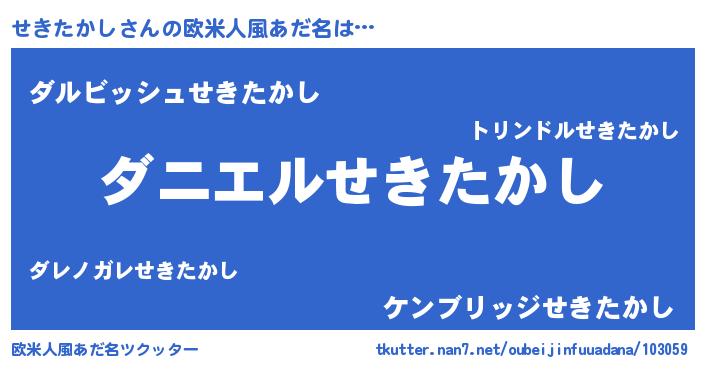 | ヘコむあだ名 | 『せきたかし(笑)』『せきにゅー』 |