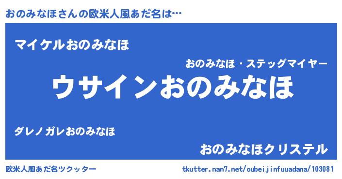 | 男性向けラノベタイトル風あだ名 | 『おのみなほの嫁は女の子じゃないと思った?』 |