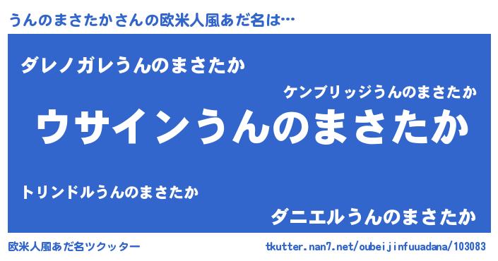 | 男性向けラノベタイトル風あだ名 | 『うんのまさたかの嫁は女の子じゃないと思った?』 |