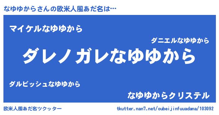 | 男性向けラノベタイトル風あだ名 | 『魔弾の王となゆゆから』 |