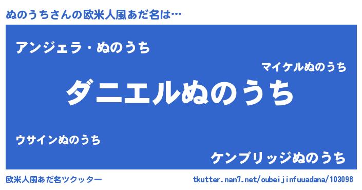 | ヒーロー風カッコイイあだ名 | 『慈愛の使者ぬのうち』『天弓騎士ヌノ』 |
