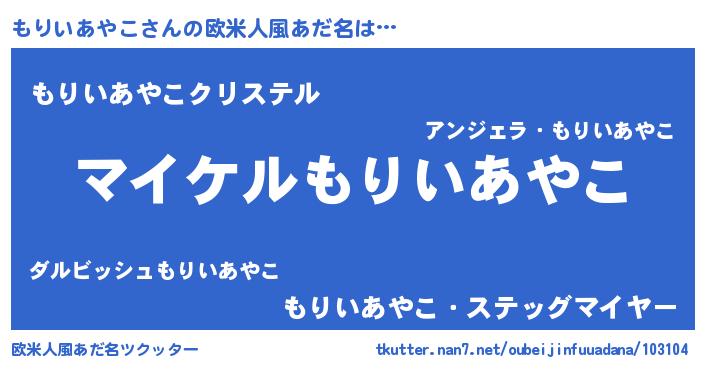 | 男性向けラノベタイトル風あだ名 | 『モリイアヤコアートオンライン』 |