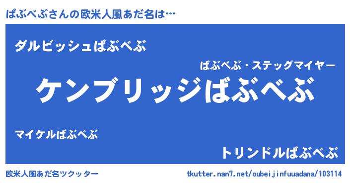 | 男性向けラノベタイトル風あだ名 | 『Re:ばぶべぶから始める異世界生活』 |