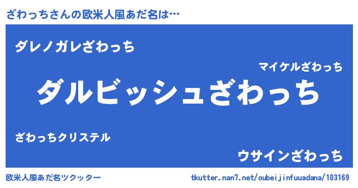 | 男性向けラノベタイトル風あだ名 | 『ざわっちという概念が存在しない退屈な世界 』 |