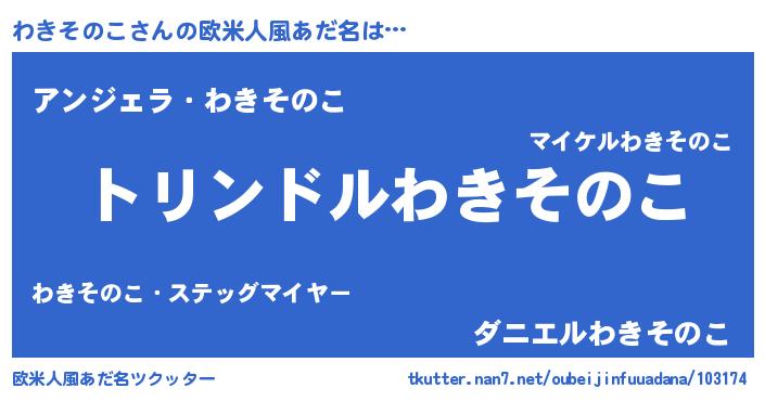 | 男性向けラノベタイトル風あだ名 | 『転生したらわきそのこだった件』 |