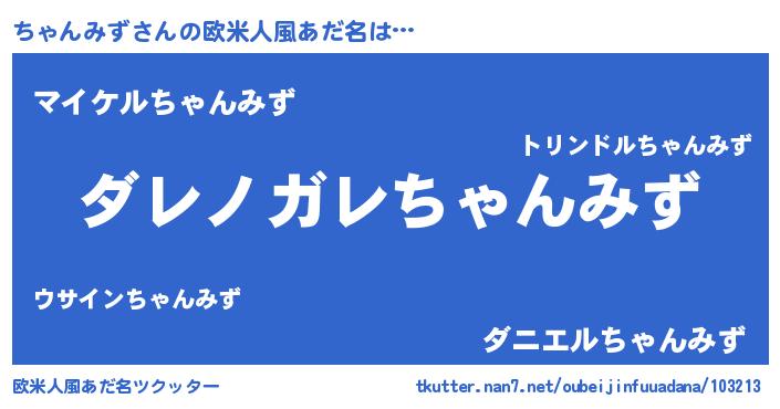 | 意味不明あだ名 | 『住所不定無職ちゃんみず(79歳)』 |