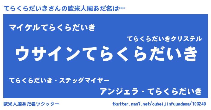 | 意味不明あだ名 | 『とにかく怪しいてらくらだいき』 |
