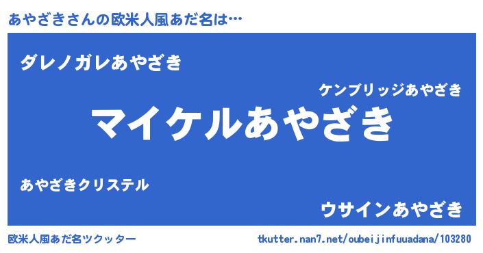 | 男性向けラノベタイトル風あだ名 | 『あやざきの憂鬱』 |