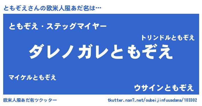 | 男性向けラノベタイトル風あだ名 | 『魔弾の王とともぞえ』『ともぞえの憂鬱』 |
