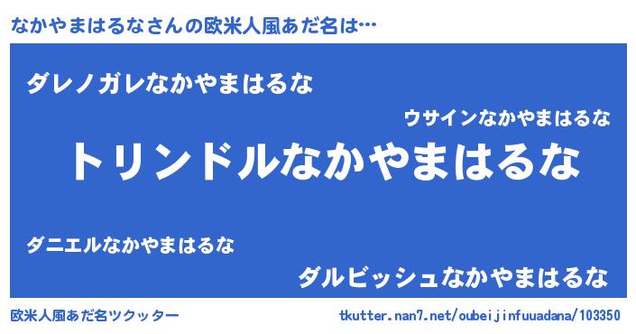 | 男性向けラノベタイトル風あだ名 | 『転生したらなかやまはるなだった件』 |