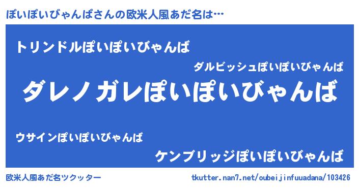 | 男性向けラノベタイトル風あだ名 | 『この素晴らしい世界にぽいぽいびゃんばを!』 |