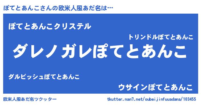 | 意味不明あだ名 | 『住所不定無職ぽてとあんこ(9歳)』 |