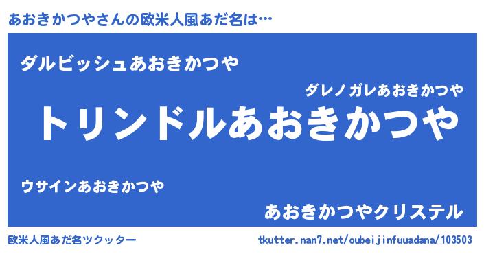 | 女子向けラノベタイトル風あだ名 | 『あおきかつやの玉の輿計画!』 |