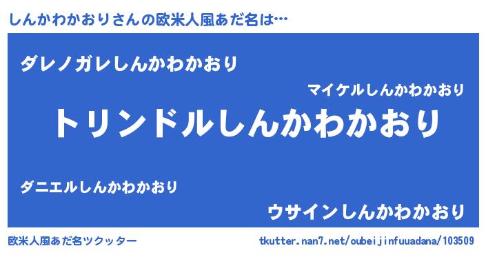 | 女子向けラノベタイトル風あだ名 | 『しんかわかおりの玉の輿計画!』 |