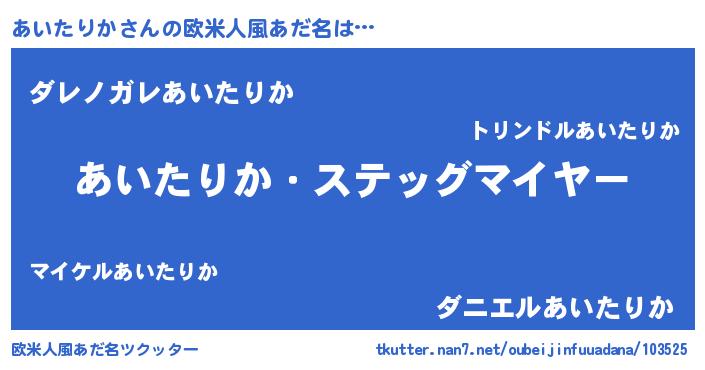 | 意味不明あだ名 | 『住所不定無職あいたりか(6歳)』 |