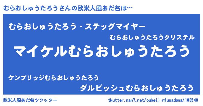 | 男性向けラノベタイトル風あだ名 | 『むらおしゅうたろうの憂鬱』 |