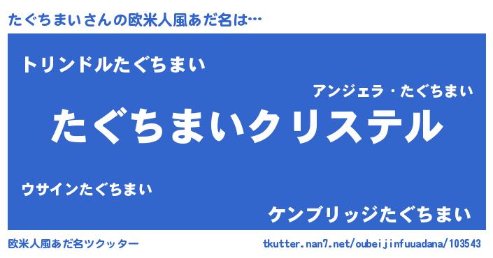 | ファンタジー風あだ名 | 『エターナルタグチマイー』『ゼタグトゥ』 |