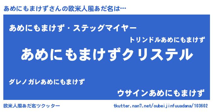 | 意味不明あだ名 | 『あめにもまけずフォーエバー』 |