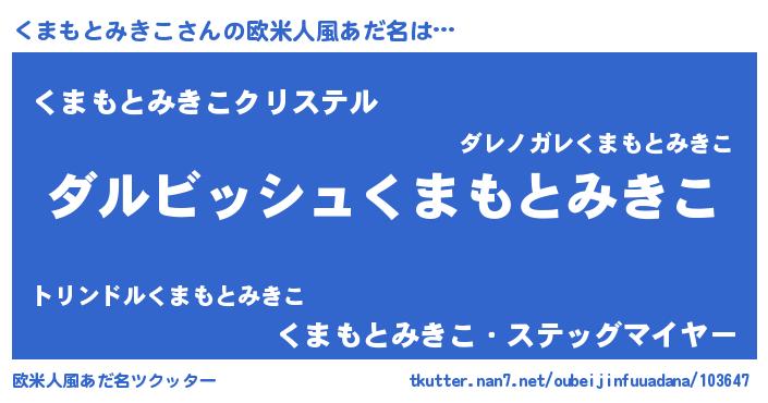 | 意味不明あだ名 | 『永久保存くまもとみきこ』 |
