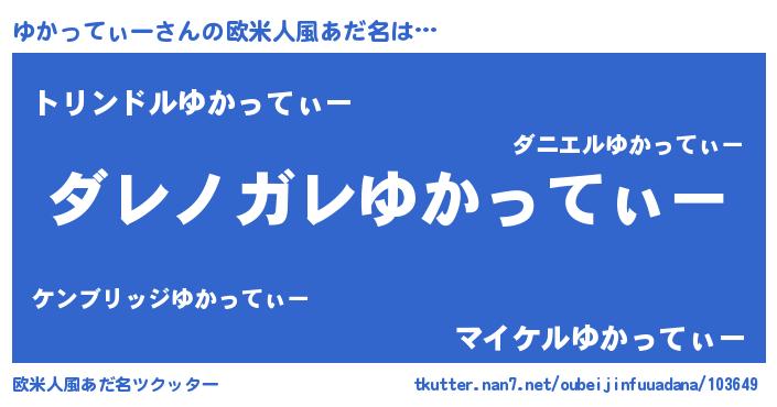 | 意味不明あだ名 | 『住所不定無職ゆかってぃー(86歳)』 |