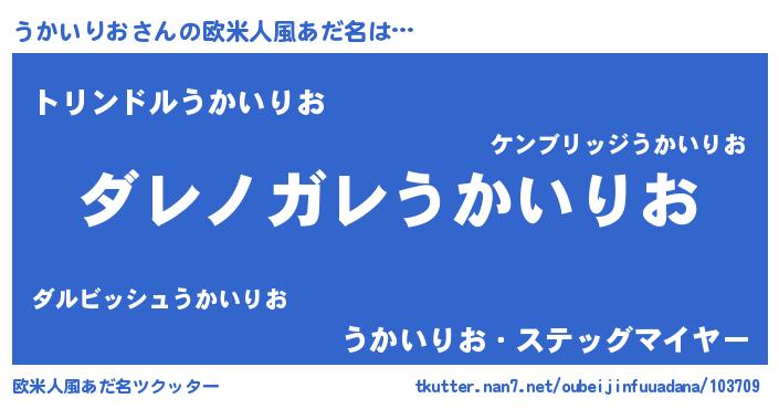 | 男性向けラノベタイトル風あだ名 | 『この素晴らしい世界にうかいりおを!』 |