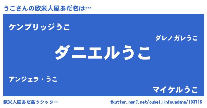 | ヒーロー風カッコイイあだ名 | 『正義の使者うこ』『最強戦士ウコ』 |