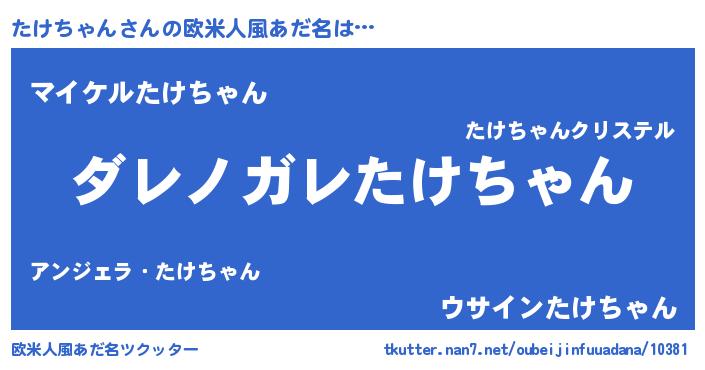 | 男性向けラノベタイトル風あだ名 | 『この素晴らしい世界にたけちゃんを!』 |