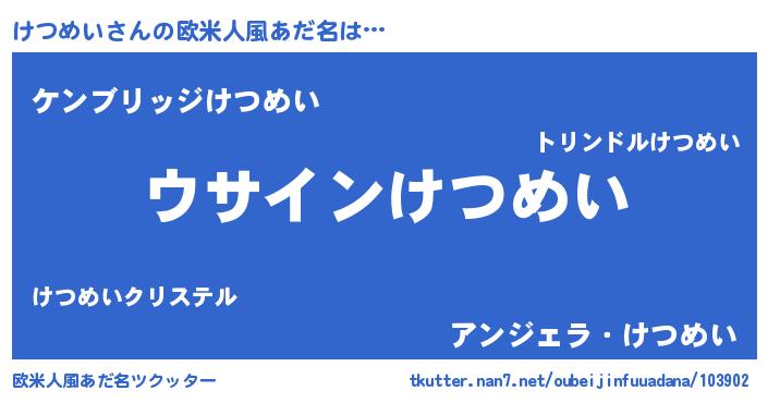 | 男性向けラノベタイトル風あだ名 | 『けつめいの嫁は女の子じゃないと思った?』 |
