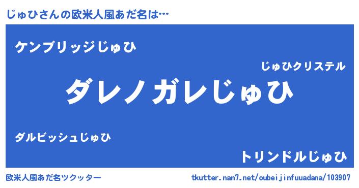 | 意味不明あだ名 | 『住所不定無職じゅひ(93歳)』『自称じゅひ』 |