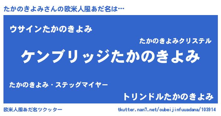 | 女子向けラノベタイトル風あだ名 | 『たかのきよみなんてお断りですっ。』 |
