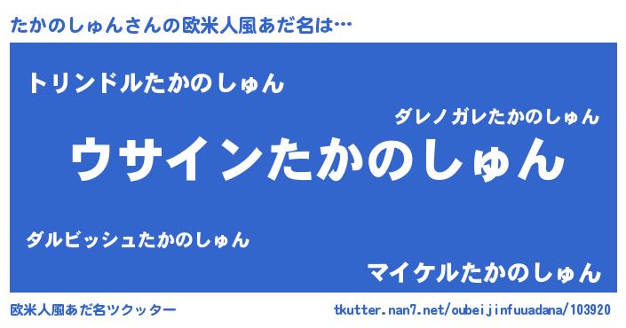 | 男性向けラノベタイトル風あだ名 | 『たかのしゅんの嫁は女の子じゃないと思った?』 |