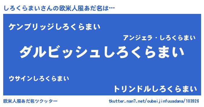| 男性向けラノベタイトル風あだ名 | 『しろくらまいという概念が存在しない退屈な世界 』 |