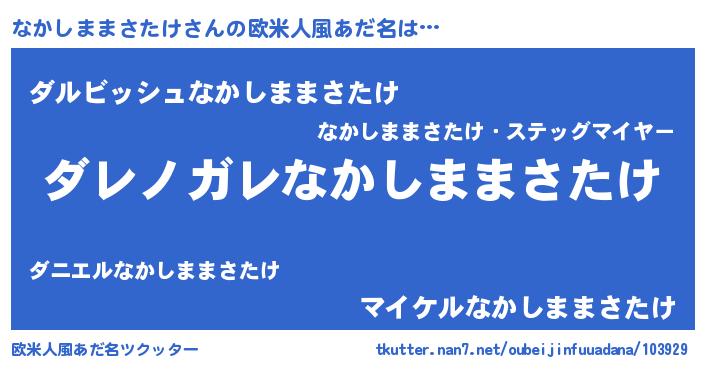 | 男性向けラノベタイトル風あだ名 | 『この素晴らしい世界になかしままさたけを!』 |