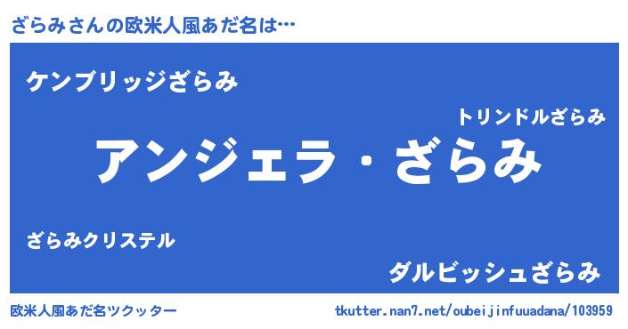 | 意味不明あだ名 | 『自称ざらみ』『永久保存ざらみ』 |