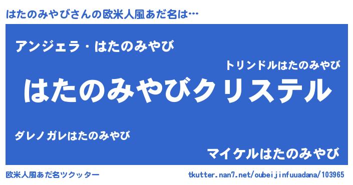 | 意味不明あだ名 | 『はたのみやびフォーエバー』 |