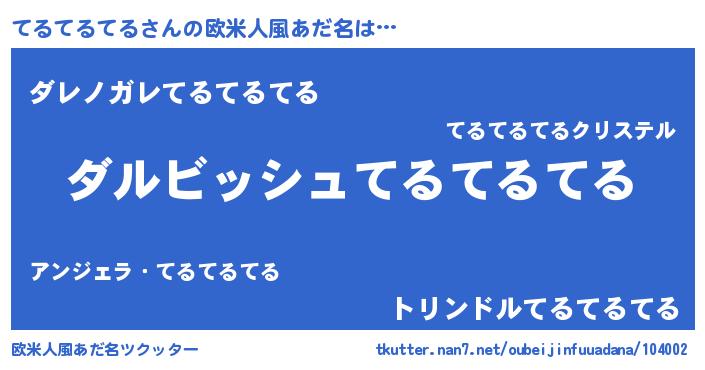 | 男性向けラノベタイトル風あだ名 | 『てるてるてるという概念が存在しない退屈な世界 』 |