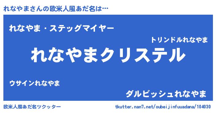| ヒーロー風カッコイイあだ名 | 『ウルトラれなやまマン』『ネオレナヤマ』 |