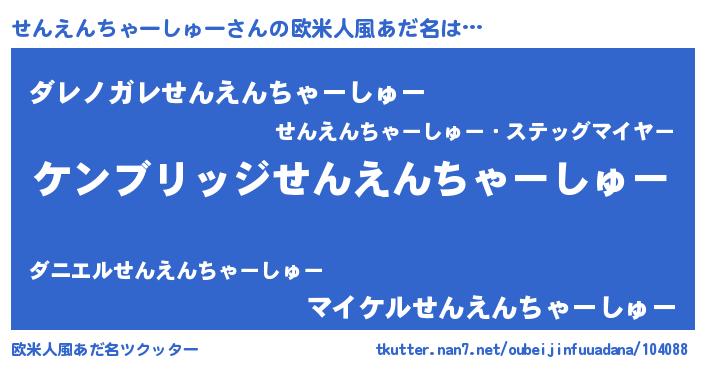 | 意味不明あだ名 | 『自称せんえんちゃーしゅー』 |