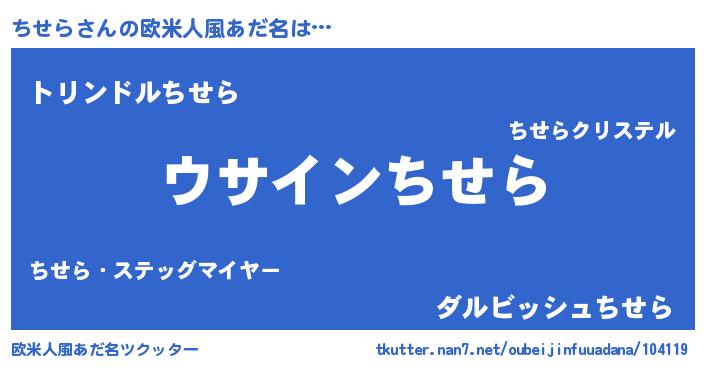 | 男性向けラノベタイトル風あだ名 | 『ちせらの嫁は女の子じゃないと思った?』 |