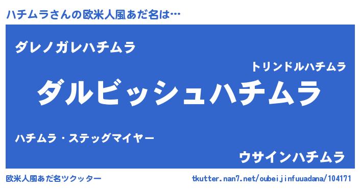 | 意味不明あだ名 | 『永久保存ハチムラ』『自称ハチムラ』 |