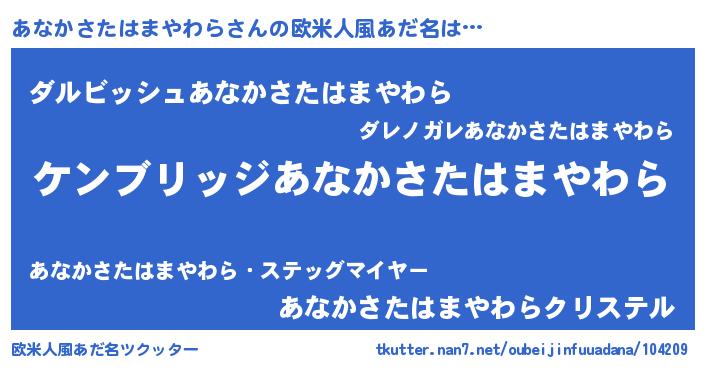 | 女子向けラノベタイトル風あだ名 | 『あなかさたはまやわらストレイドッグス』 |