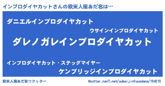 | ことわざ | 壁に耳あり障子に目あり『インブロダイヤカットに耳ありインブロダイヤカットに目あり』 |