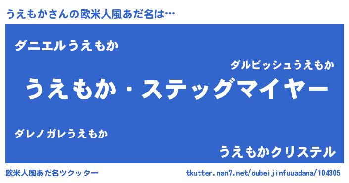 | ヒーロー風カッコイイあだ名 | 『慈愛の使者うえもか』『ネオウエモカ』 |
