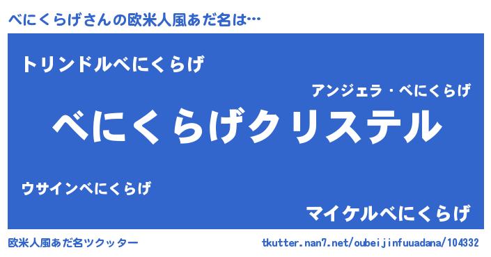 | ファンタジー風あだ名 | 『エターナルベニクラゲー』『ベニフェル』 |