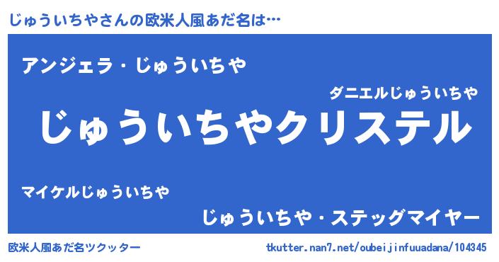 | 男性向けラノベタイトル風あだ名 | 『やはりじゅういちやの青春ラブコメはまちがっている 』 |