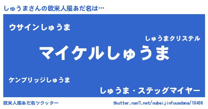 | 女子向けラノベタイトル風あだ名 | 『しゅうま姫と円卓の騎士』 |