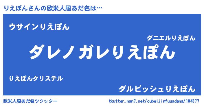 | 男性向けラノベタイトル風あだ名 | 『この素晴らしい世界にりえぽんを!』 |