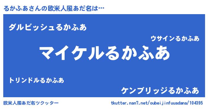 | 男性向けラノベタイトル風あだ名 | 『るかふあの憂鬱』 |