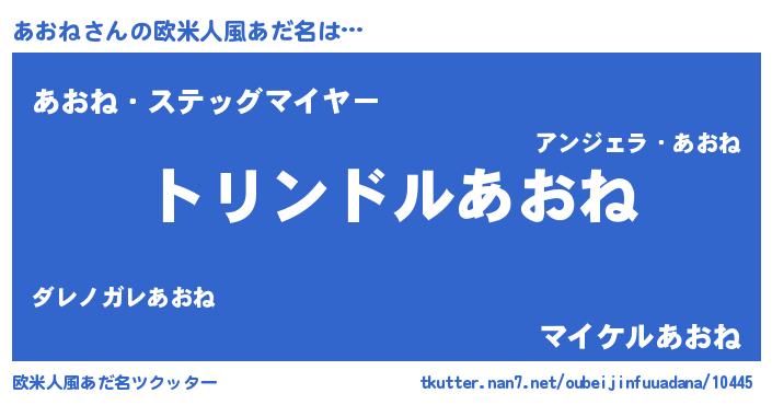 | 男性向けラノベタイトル風あだ名 | 『アオネスレイヤー』『魔弾の王とあおね』 |